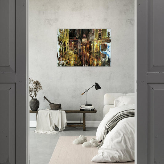 Night view of Charles Bridge in Prague - Canvas Print on stretcher bars