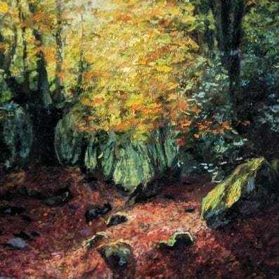 Although there are other colourful paintings of forests, they tend to apply the colours in an exaggerated way and without taking into account the nuances and colour gradients that occur in the masses of leaves.