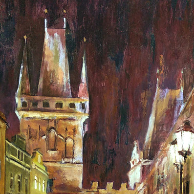 This spectacular work on the city of Prague was produced and acquired in 2019. It depicts a spectacular night view of the entrance to Charles Bridge from the Malá Strana district.