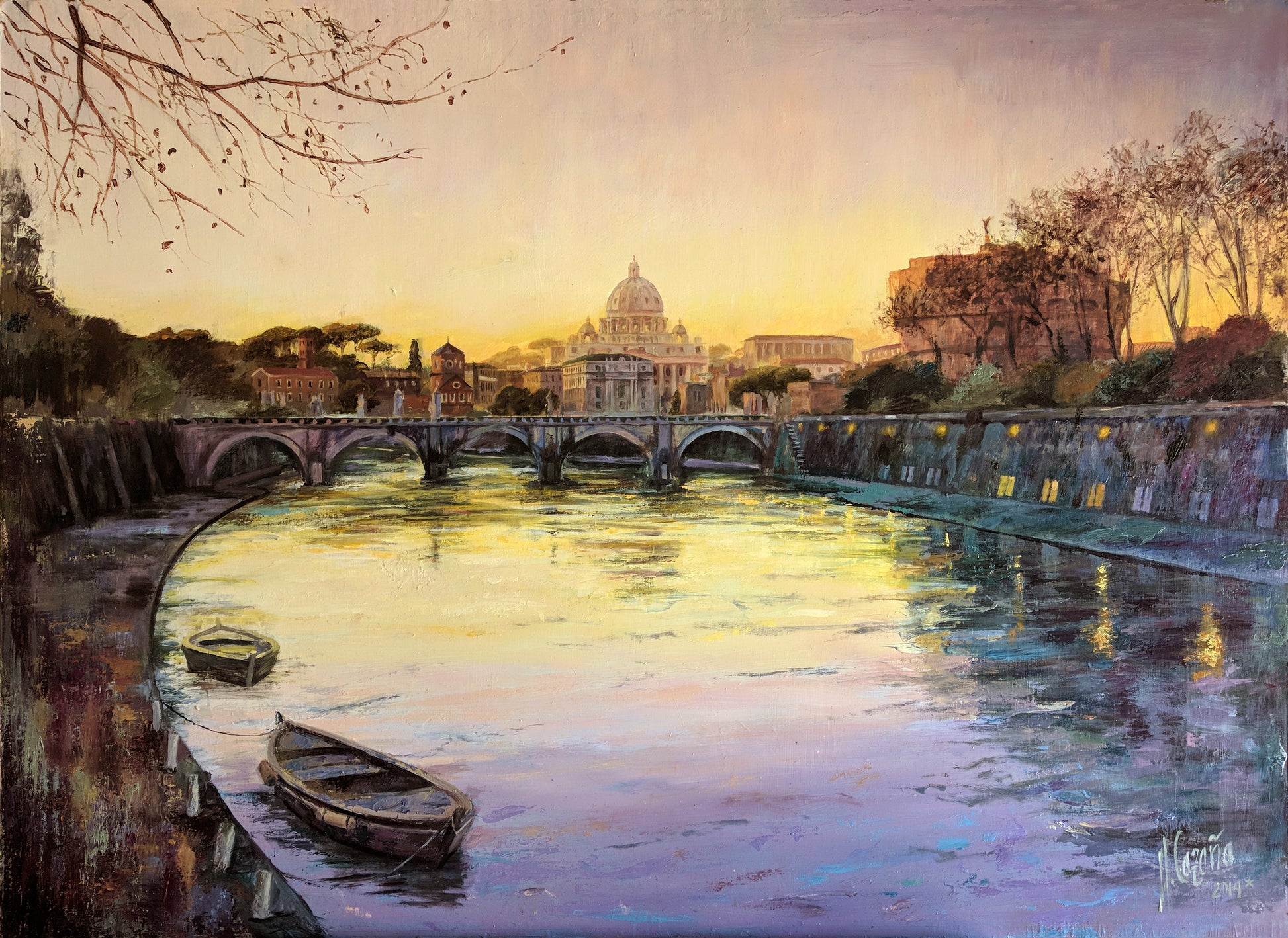 All the architectural elements that appear from the first terms are well placed. In the last term, the dome of the Vatican, totally centred and capitulating the landscape, seems a symbol of firm resistance in front of this impressive infinite sky.