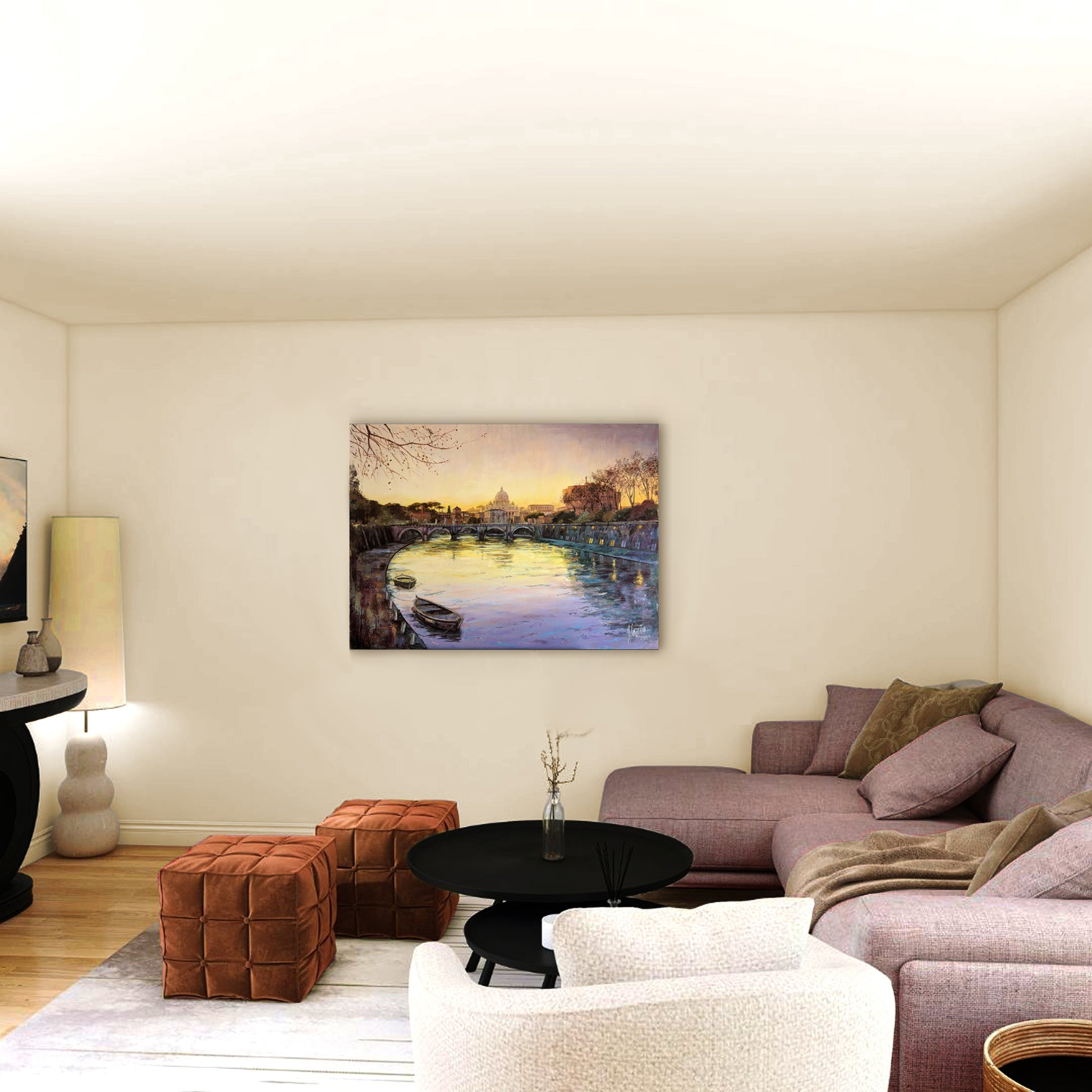 Rome. Tiber River and the Vatican - Canvas Print on stretcher bars