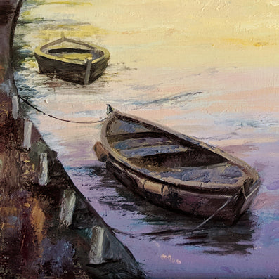 The original work, executed in oil on wood with palette knife and brush, is deeply inspiring for the state of well-being and calm it conveys.