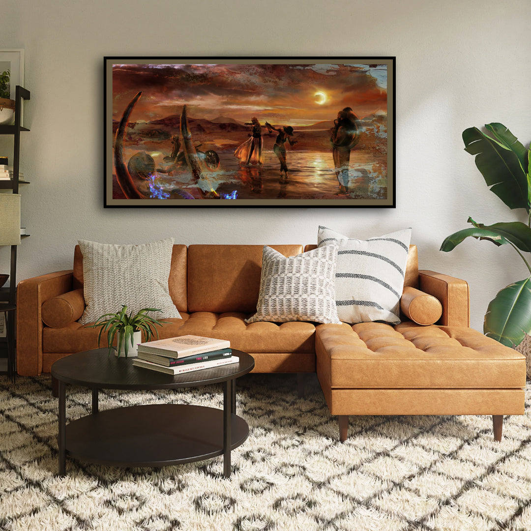 Since most of the artworks are sent framed, in the unlikely event that the artwork arrives damaged, it will most likely be in the frame. In such a case the artist agrees to pay for a frame of the same value as the one delivered with the artwork.